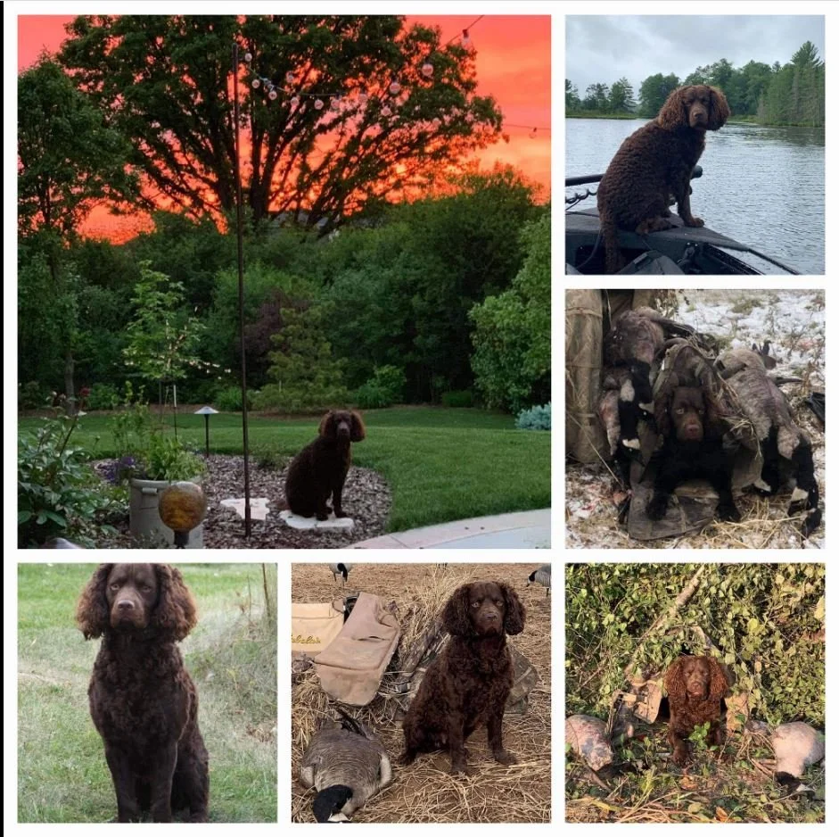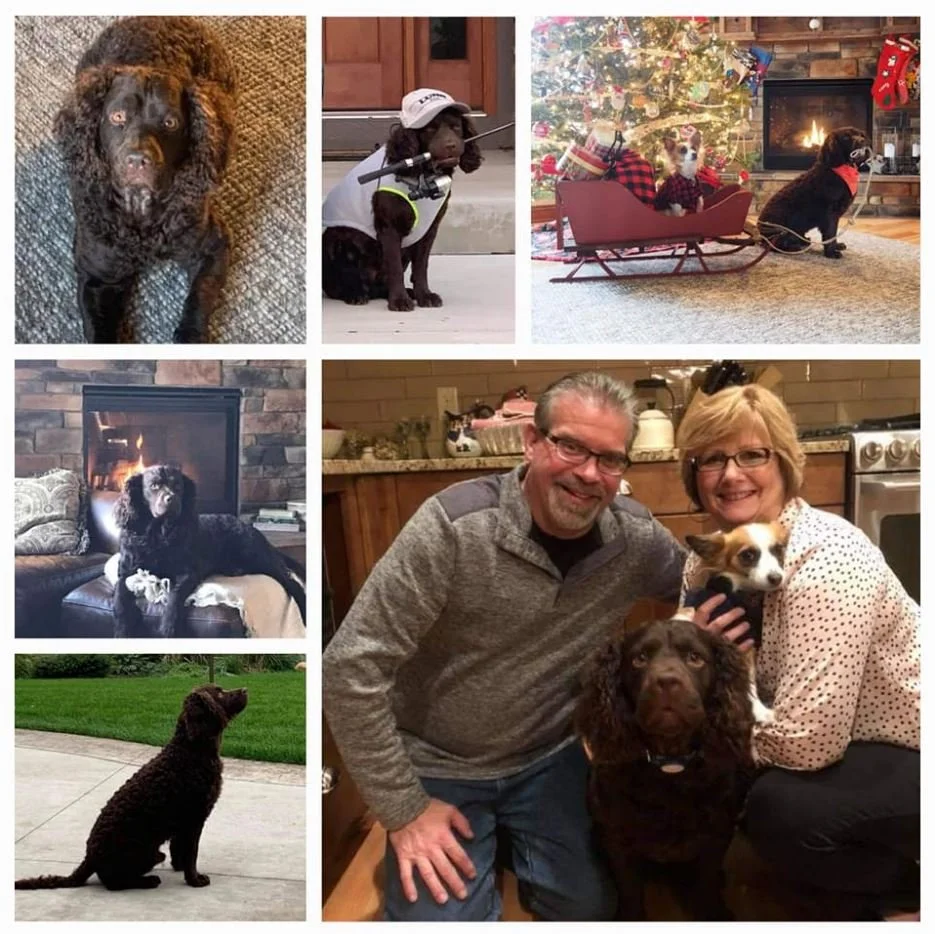 As much as Raylan enjoyed traveling to and hunting in many states, he also enjoyed being at home with his family and his fur siblings. He kept an eye on mom each Christmas to supervise the tree trimming and to make sure no birds were hiding in it. He also was highly suspect of Santa and kept watch to make sure he didn't steal anything He loved his WI teams and he loved celebrating the holiday that is all about America(n Water Spaniels). He also specialized in mom cuddles, and we can all bet he earned a ribbon for that also.